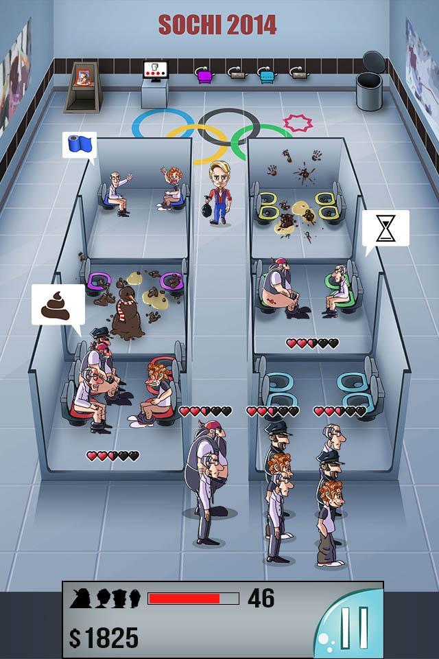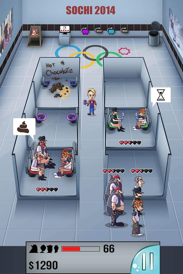 Passe por sessenta níveis e lide com uma massa cada vez maior de clientes que estão seriamente com pressa. Teste sua rapidez e sua capacidade de gestão neste arcade como o jogo e ajude a Rússia a não ser famosa por seus banheiros ... por favor?